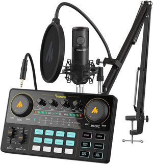 • [TOUT EN UN et FACILE À UTILISER]: Fonctionne comme une interface audio et une station de mixage, intégrant l'équipement de mixage audio en une solution complète. Il offre une qualité sonore exceptionnelle et permet un contrôle intuitif et complet pour optimiser les effets vocaux et sonores. Le bundle d'équipement podcast est livré avec un microphone à condensateur qui vous permet de commencer facilement le podcasting ou le streaming en direct en un rien de temps. Commencez l'enregistrement lorsque vous le branchez sur le smartphone ou le PC.